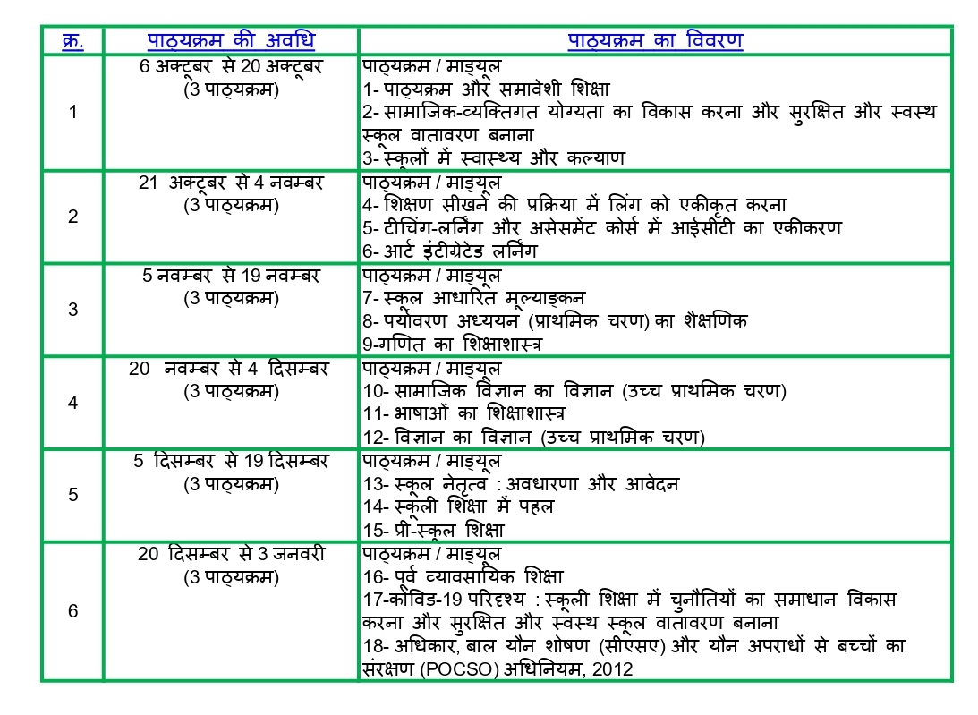 भारत शासन की गाईडलाईन के अनुसार कक्षा 1 से 8 तक के समस्त शिक्षकों का NCERT द्वारा निर्धारित माड्यूल पर निष्ठा ऑनलाइन प्रशिक्षण कार्यक्रम पूर्व में जो 1 अक्टूबर से प्रारंभ होना था जिसे कतिपय कारणोंवश एनसीईआरटी द्वारा स्थगित किया गया था उक्त प्रशिक्षण अब दिनांक 6 अक्टूबर 2020 से प्रारंभ किया जा रहा हैं।